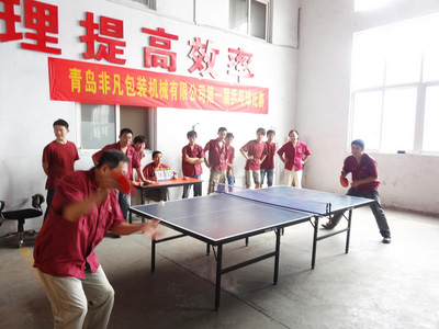 由青島非凡包裝機(jī)械有限公司舉辦的第一屆乒乓球比賽于2013年9月30日勝利閉幕,本次比賽共8支代表隊(duì)參加團(tuán)體賽,20多名職工參加個(gè)人賽,充分展現(xiàn)了我公司職工爭(zhēng)創(chuàng)一流、勇攀高峰的精神風(fēng)貌,是公司職工乒乓球愛(ài)好者展示技藝、切磋球技的一次交流盛會(huì)。
